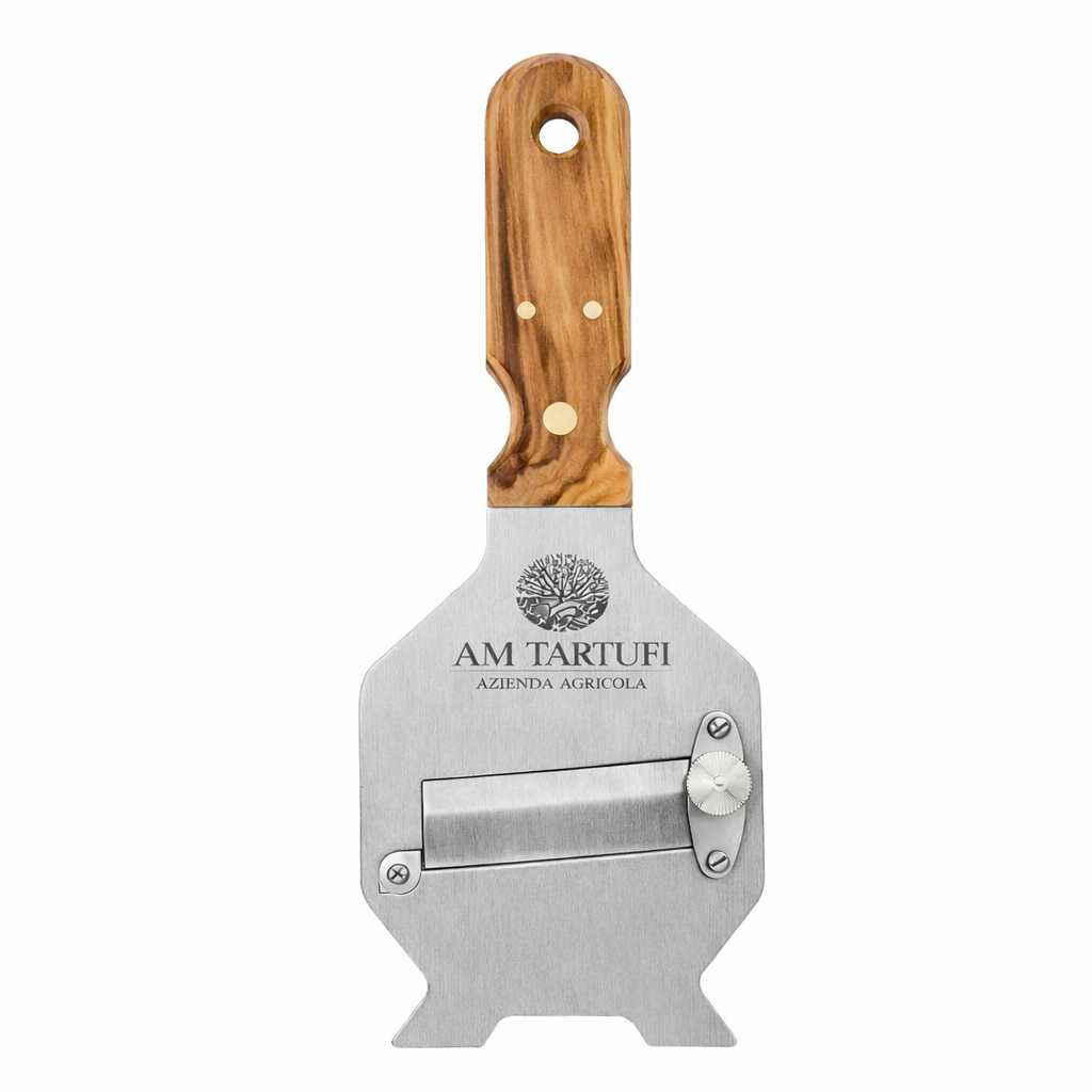 Affetta tartufi in acciaio inox con manico in ulivo